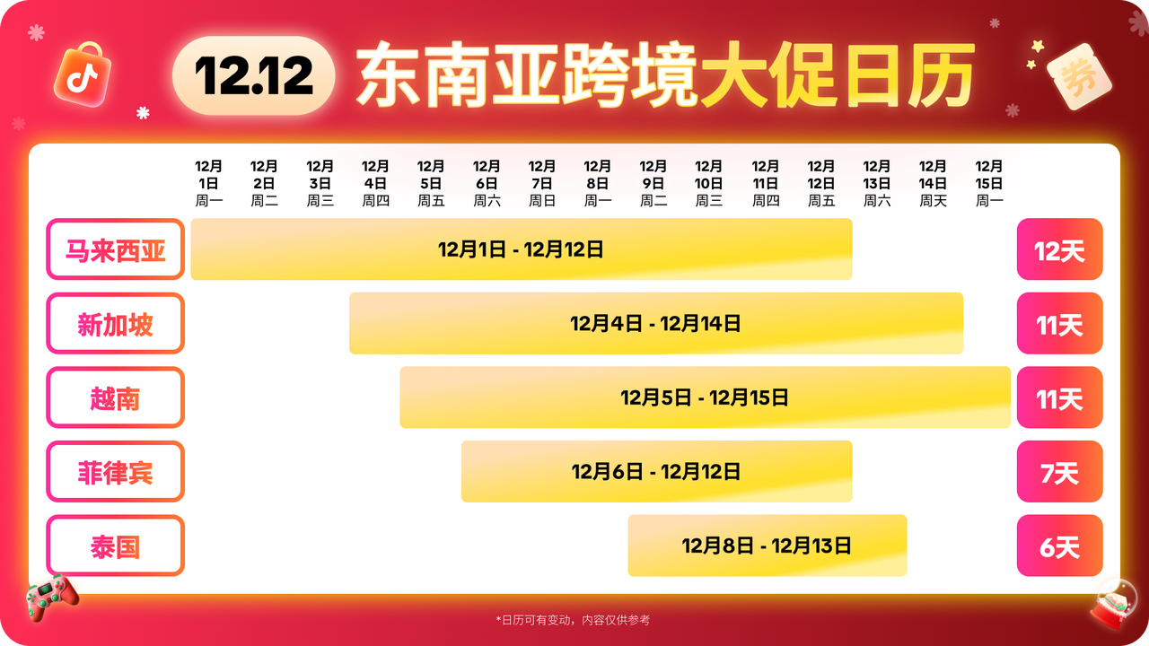 各位商家老板们可参照上图各市场的活动节点,积极参与大促期间的各类玩法与项目!尤其别错过12月1日至12月15日的12.12大促黄金期,助力您实现业绩的全新突破!🚀