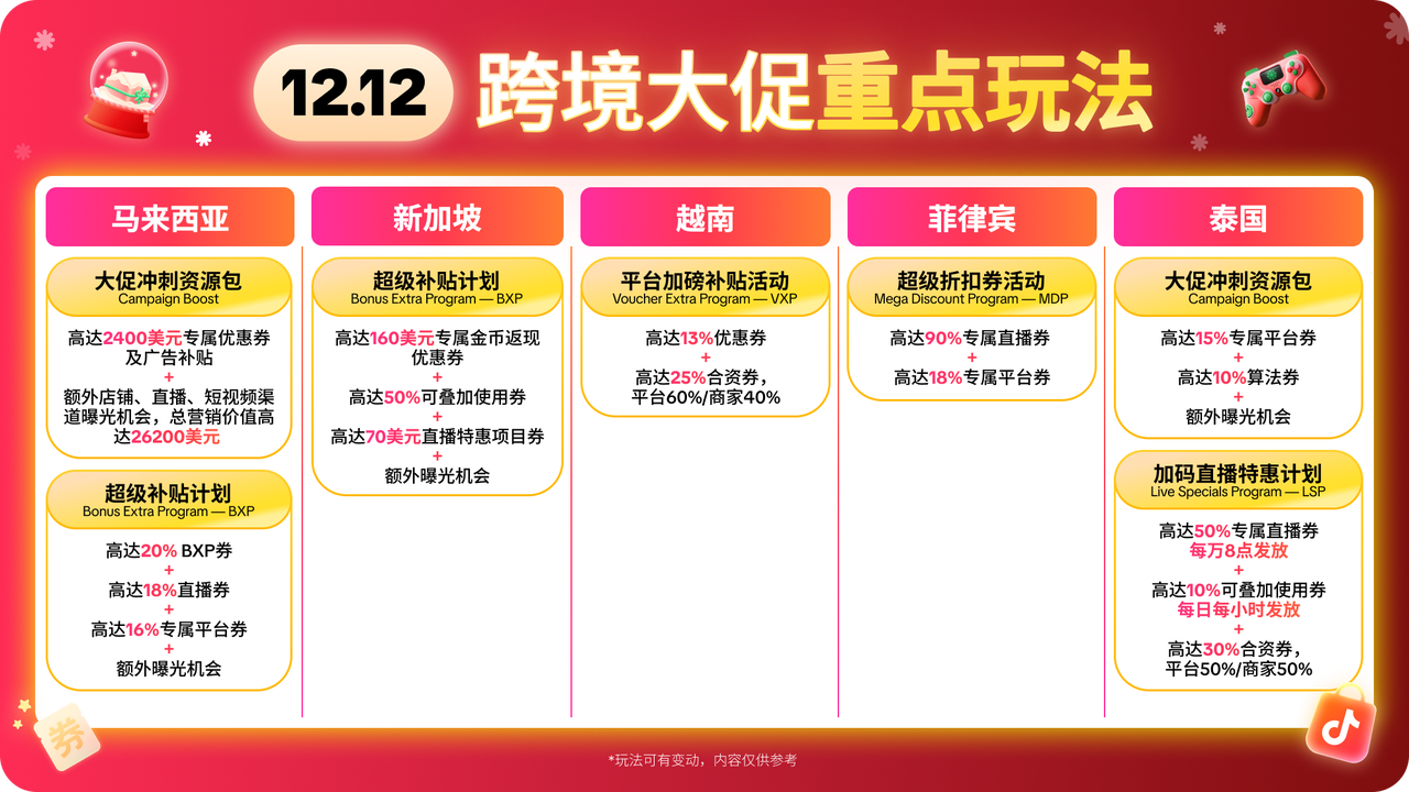 圣诞节是 TikTok Shop 东南亚跨境电商年终冲刺关键节点,借助节日氛围与平台势能,12.12 大促已成为商家推动商品销量增长、提升品牌知名度、冲击年度业绩的核心战场。